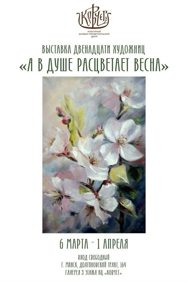 В выставочном центре «Культурный духовно-просветительский центр «Ковчег» в Минске с 6 марта по 1 апреля 2025 года пройдет праздничная художественная выставка «А в душе расцветает весна…».