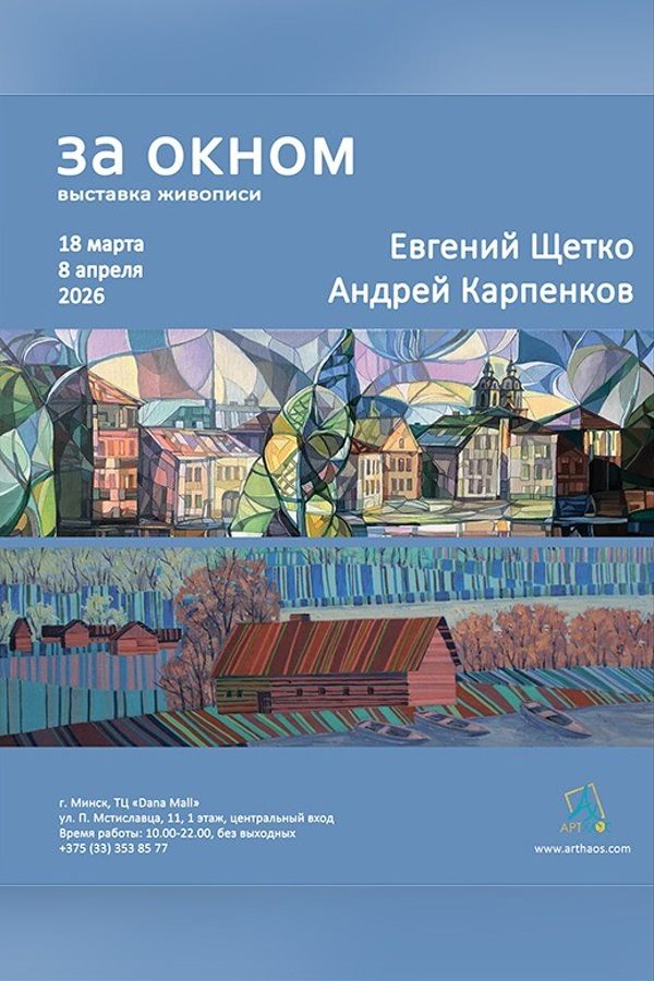 Окна домов и гостиниц, окна машины или туристического автобуса… Сквозь них мы выхватываем фрагменты новых или хорошо знакомых городских и сельских пейзажей, сквозь стекло формируются наши впечатления. Два белорусских художника Андрей Карпенков и Евгений Щетко представляют на выставке свой вариант путешествия, локации которого можно увидеть сквозь «стекло» искусства — живописные работы авторов. Для Евгения Щетко творчество это и есть путешествие между двумя пунктами: реальностью и миром фантазии. Живописные холсты Андрея Карпенкова можно воспринять как своеобразные окна памяти, сквозь которые мы разглядываем тёплые фотокарточки из детства или же наблюдаем за такими родными и знаковыми природными или сельскими ландшафтами.