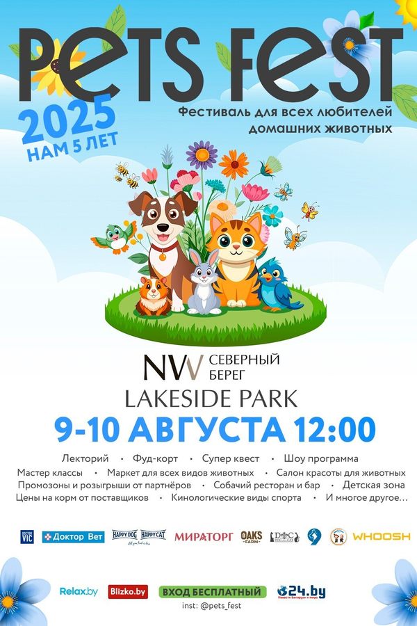 Готовьтесь к яркому и запоминающемуся событию этого лета — в Минске пройдет пятый по счету Pets Fest! 9-10 августа на территории Lakeside Park, расположенного на берегу Цнянского водохранилища, соберутся тысячи любителей домашних животных, чтобы вместе разделить любовь к нашим четвероногим друзьям.