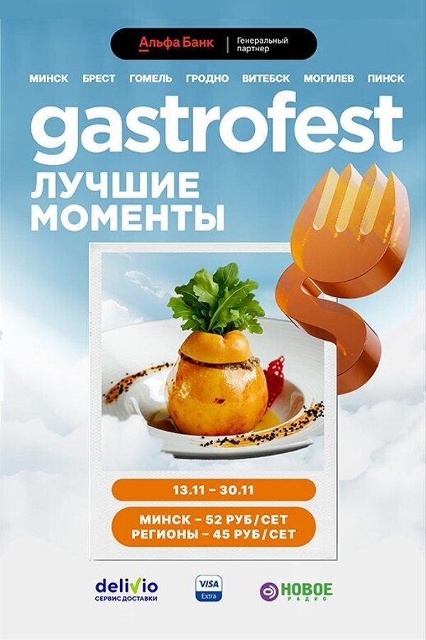 Генеральным партнером выступает Альфа Банк. По традиции гостей Гастрофеста будут ждать Альфа Бонусы, которые начислят каждому, кто оплатит сет картами Пакетов решений Альфы. Как их использовать? Потратить в ЕРИПе, покрыть ими часть стоимости банковских услуг, потратить на благотворительность или перевести в деньги. С картой Альфы не только вкусно, но и выгодно!