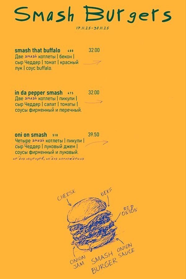 Фестиваль смэш бургеров продлится до 30 ноября и станет частью новой концепции, где неожиданность и удовольствие встречаются в каждой детали.