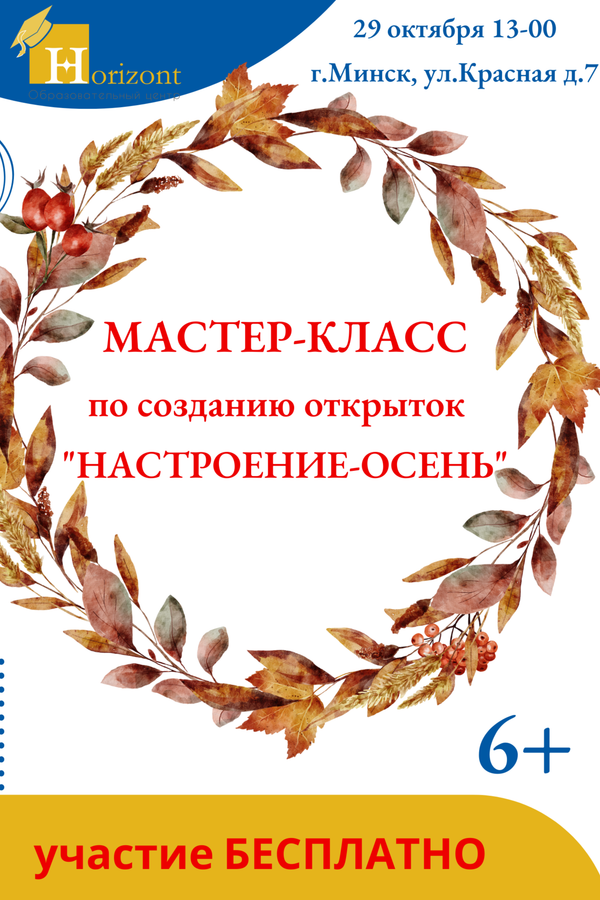 Образовательный центр «Горизонт» приглашает на мастер-класс по созданию открыток «Настроение - осень»