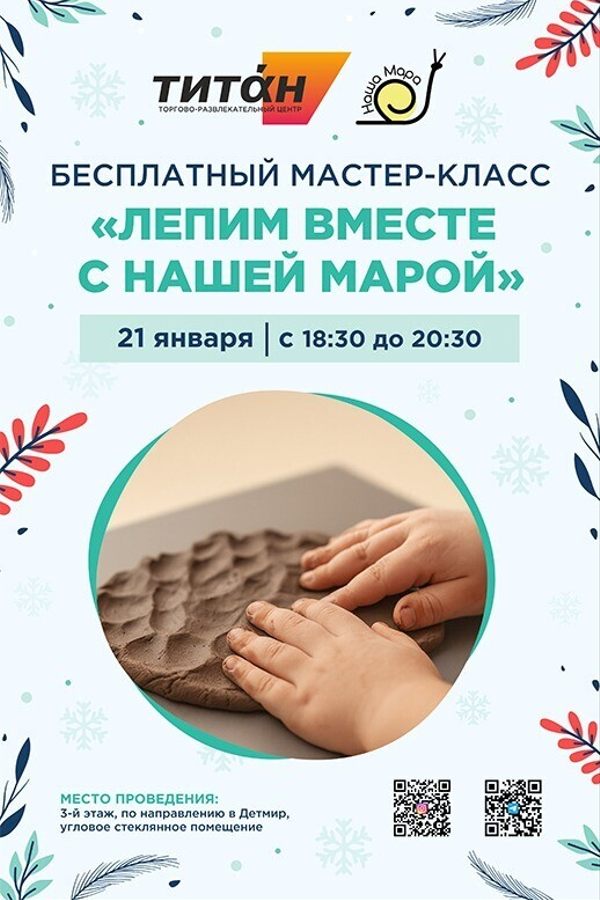 Хотите провести вечер с пользой и вдохновением? 21 января мы ждём вас на бесплатном мастер-классе по лепке из глины — «Лепим вместе с Нашей Марой».