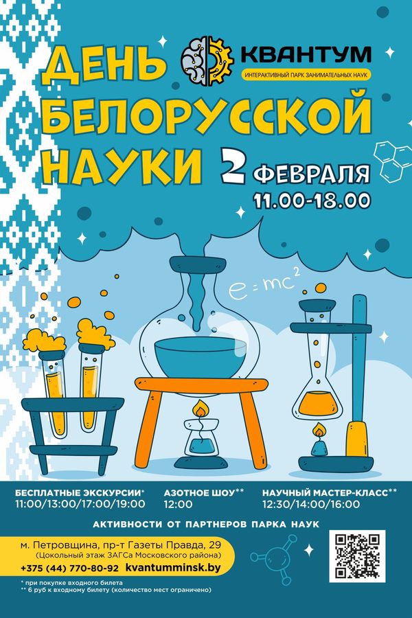 **Для посещения научного шоу необходимо приобрести дополнительный билет — стоимость 6,00 руб., мастер-класс — 6,00 руб./чел. Приобретается по желанию в дополнение к входному билету в день мероприятия на кассе музея. Количество мест ограничено!