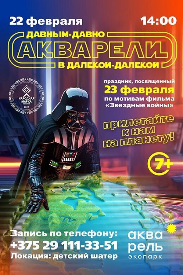 Приглашаем вас на праздник, посвященный 23 февраля, по мотивам легендарного фильма «Звездные войны»! Могучий Ситх, Дарт Вейдер, задумал захватить очередную планету, и его выбор пал на нашу планету Акварель.