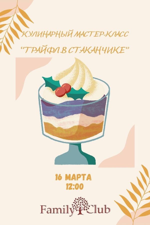 Мы точно знаем чем занять ваших деток в это воскресенье! Приглашаем записаться на кулинарный мастер-класс. Трайфл — это маленький порционный тортик в стаканчике . Рецепт очень простой и не капризный, ребенок легко справится с ним. У этого десерта красивый и оригинальный внешний вид, он идеален на прогулке или пикнике, идеален для праздников. Рецепты могут быть самые разные, поэтому мы уверены, что вы вместе еще не раз приготовите его дома. Дети научатся пошаговому приготовлению десерта, познакомятся и весело проведут время.