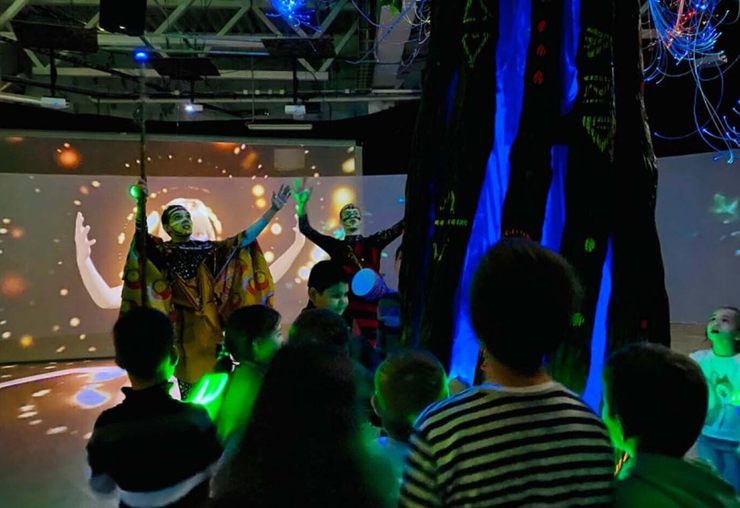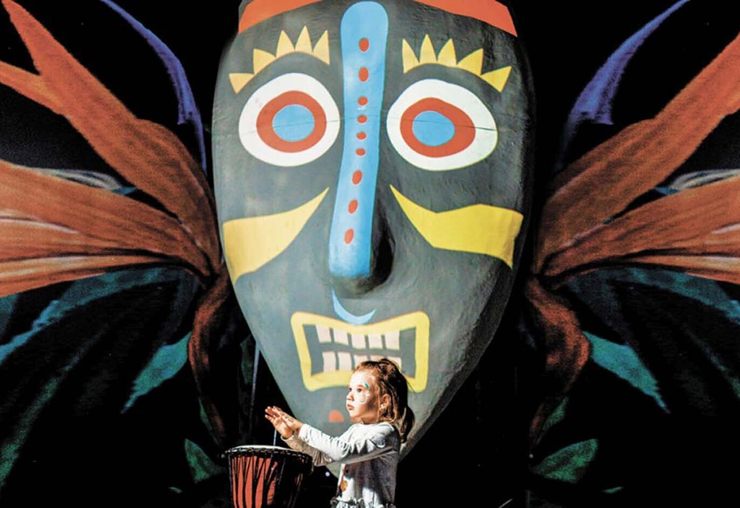 2) Первое же помещение - выслушай приветствие аборигена, угадай глаза животных. К сожалению, расслышать даже "экскурсовода" трудно из-за галдежа. Прямо из-за занавески рядом стоит галдёж - кто-то бьёт в барабан и случайным образом экран показывает какое-нибудь африканское племя, громко проигрывая запись с описанием.