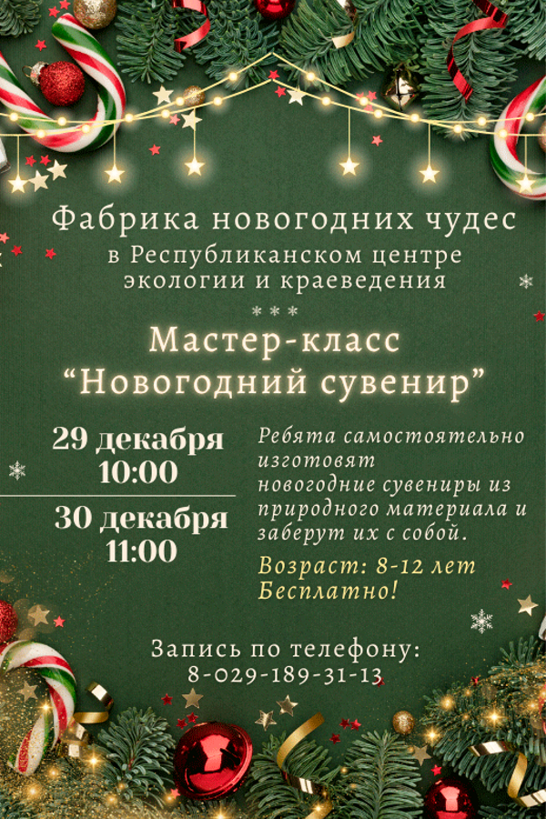 Приглашаем вас на увлекательный мастер-класс, где каждый сможет создать новогодние сувениры из природного материала. В процессе работы ребята превратят природные «ингредиенты» в оригинальные поделки, которые смогут забрать с собой. Погрузитесь в атмосферу творчества и создайте незабываемые памятные сувениры!