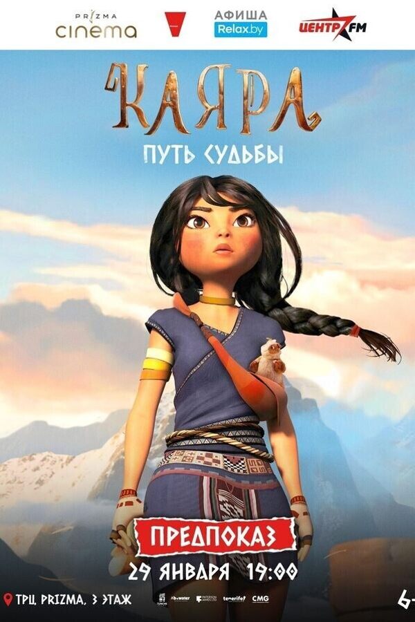 Приглашаем на премьерный предпоказ мультфильма «Каяра. Путь судьбы». Перед началом мультфильма гости смогут примерить на себя образ отважной Каяры, который помогут создать профессиональные художники и аэрогример. Запечатлеть каждый образ помогут опытные фотографы на тематической фотозоне. В кинобаре Prizma cinema будут представлены оригинальные угощения и коктейли. Каждый гость сможет поучаствовать в дегустации нового вида попкорна от кинотеатра Prizma cinema.