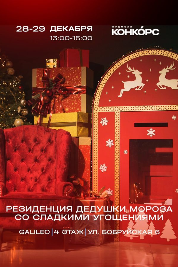 Резиденция Дедушки Мороза на Конкорсе со сладкими угощениями — (13:00–15:00).