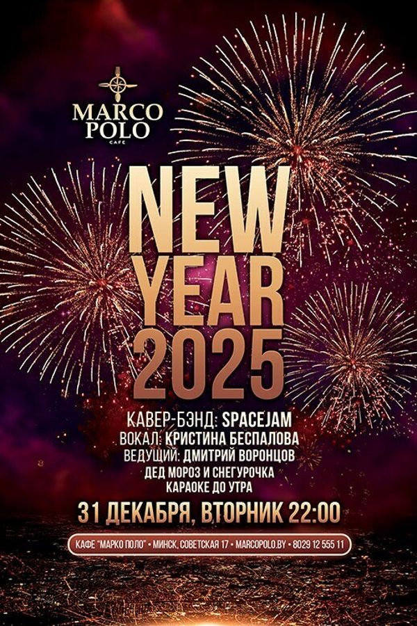 Отпразднуем Новый год вместе с кафе Марко Поло, где царит праздник! Великолепная кухня, шоу-программа от нашего ведущего под живую музыку, а Дед Мороз и Снегурочка добавят волшебства! И на десерт — караоке программа, которая подарит возможность весело провести время до самого утра! Ждём вас на главный праздник года в самом центре нашей страны!