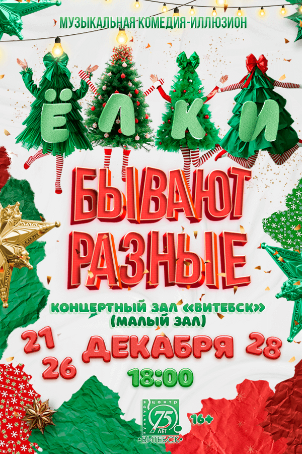 Молодёжный театр «Колесо» приглашает девушек и юношей в концертный зал «Витебск» на музыкальную комедию-иллюзион «Ёлки бывают разные».