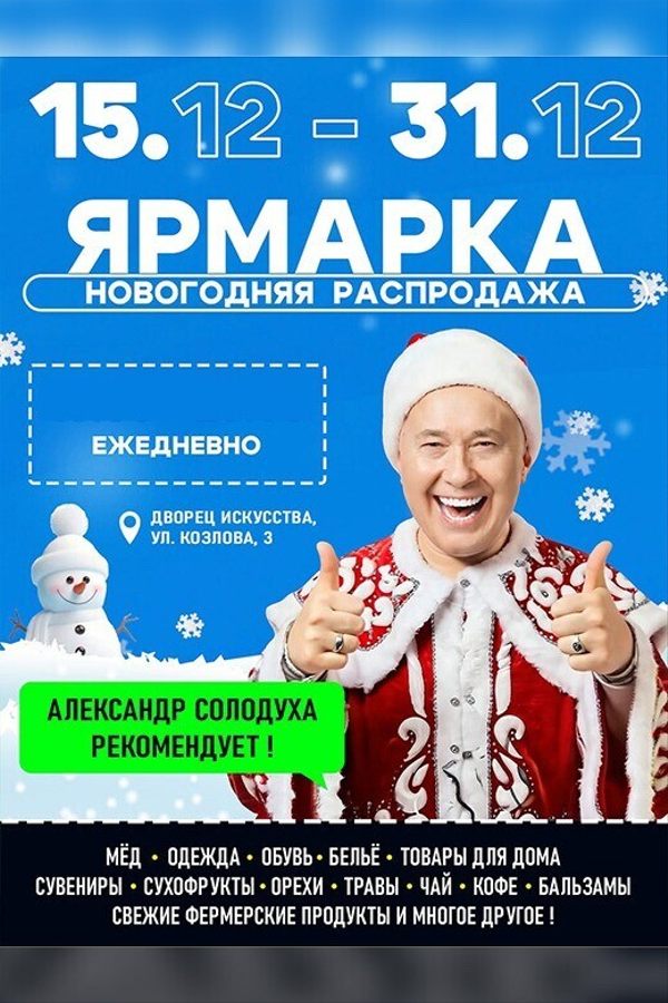 С 15 — 31 декабря 2025 года во Дворце Искусства, ул. Козлова, 3.