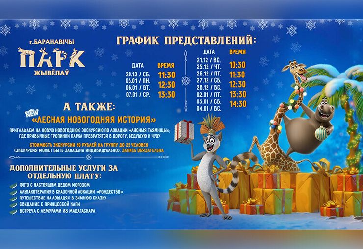Стоимость экскурсии «Лесная новогодняя история» — 80,00 руб. (на группу до 25 человек, запись обязательна)
