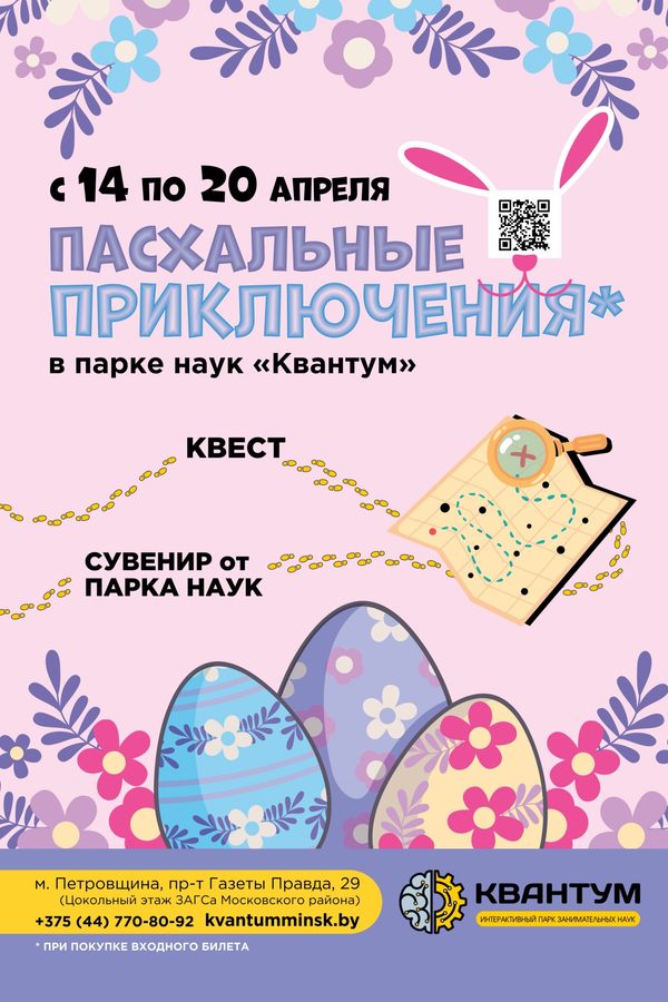 Пасха — время чудес, и мы приготовили для вас особенный квест, полный научных открытий и сюрпризов! Присоединяйтесь к захватывающему научному приключению в нашем парке! Вы сможете окунуться в мир загадок, экспериментов и веселья.