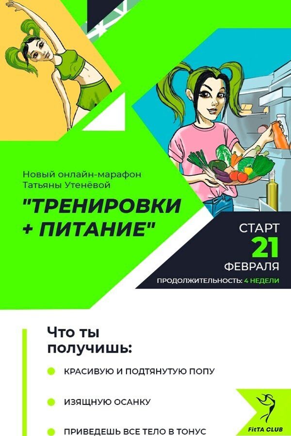Для нового онлайн-марафона Татьяны Утенёвой «Тренировки + питание» достаточно всего 30 минут в день.