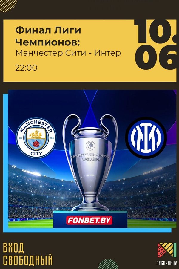 Финал Лиги Чемпионов можно посмотреть на фуд-площадке «Песочница». Гости площадки смогут с комфортом разместиться за хорошим экраном, попробовать сеты в фудтраках «Песочницы» и насладиться атмосферой.
