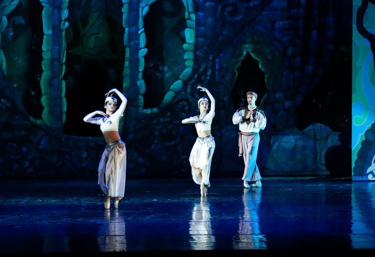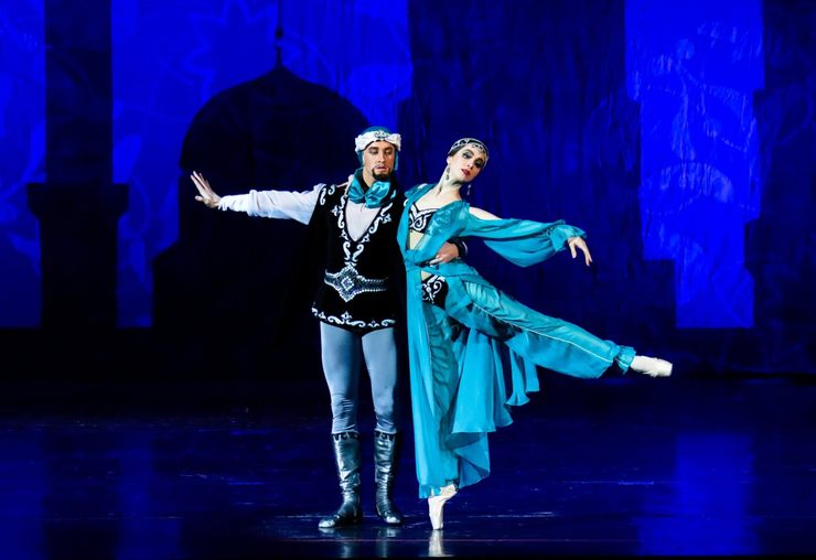На сцене — красочная хореографическая феерия, гармоничное сочетание образной музыки и классической хореографии, тонкое очарование востока в постановке на музыку народного артиста СССР, знаменитого азербайджанского композитора Фикрета Амирова.