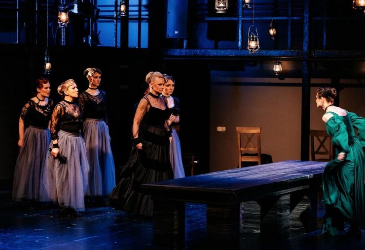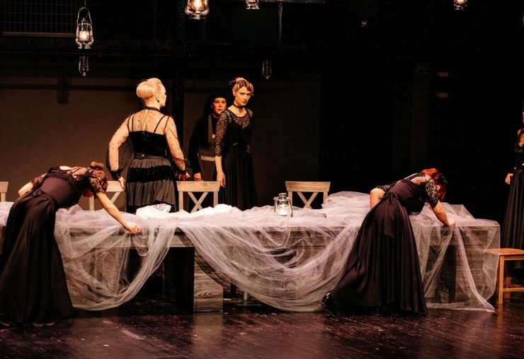 Далёкая, загадочная Испания! В дом Бернарды Альбы приходит горе: умирает муж и отец ее детей. На руках у нее остаётся 5 взрослых дочерей и только самая старшая из них получает наследство, без которого у остальных просто нет никакого шанса выйти замуж и стать счастливой. Страсти неистово кипят в этом совершенно закрытом доме и обстоятельства складываются так, что в округе просто нет достойных мужчин. Мать, бабушка, служанка и пять совершенно разных, жаждущих любви, женского счастья, девушек словно в консервной банке начинают жалить друг друга, не находя выхода своим инстинктам и природным желаниям. Режиссура, сценография музыка и пластика спектакля находятся в строгом, почти готическом стиле. Страстью и необузданными порывами пронизана каждая мизансцена. Все движения отточены, каждый поворот головы, каждая поза имеют тайный смысл. Мистика так и витает в воздухе этого закрытого от чужих глаз дома. Сколько предрассудков, сколько ненужных запретов, сколько навязанных стереотипов окружают всех нас! А в женском мире их особенно много. Яблоком раздора становится единственным мужчина — Пепе Римлянин. Девушки следят друг за другом, завидуют и вместо любви наполняют сердца ненавистью и болью. Все усилия их матери и все попытки служанки исправить взрывоопасную ситуацию терпят полное фиаско… Слишком опасно насильно сдерживать женскую природу…