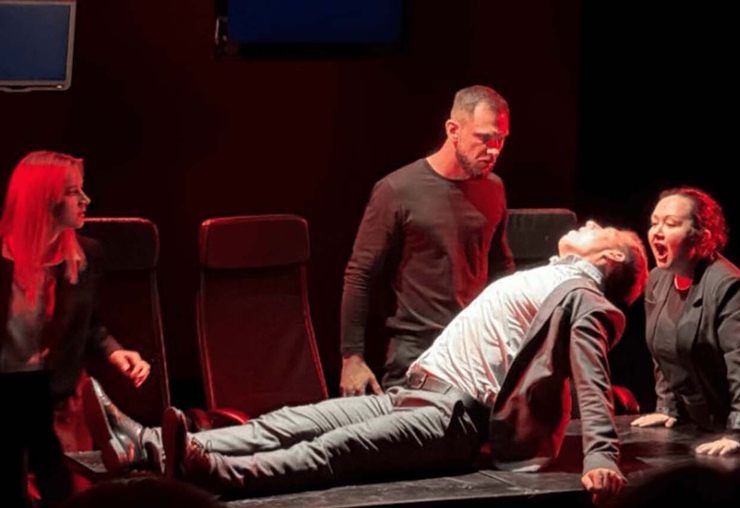 Те, кто любит не только театр, но и кино (а таких, я уверена, большинство), уже посмотрели английский фильм «Экзамен», 2009 года. И на этапе прочтения аннотации спектакля провели параллели: и тут, и там замкнутое пространство претендентов на пост директора, странные задания проверки человеческих способностей, вспышки различных чувств и эмоций и некая неопределенность цели всего действа.