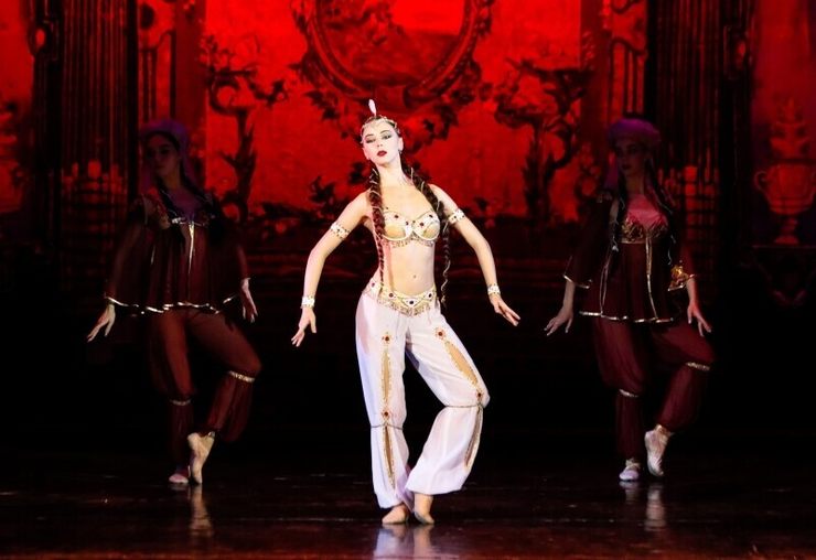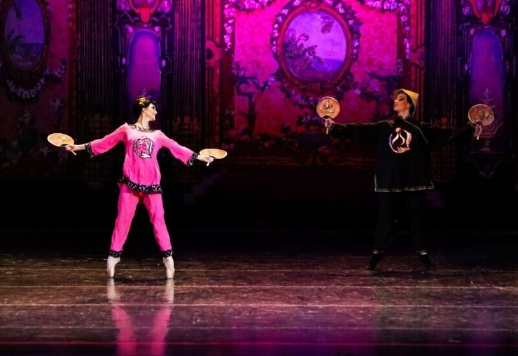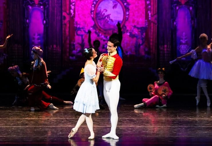 Под прекрасные звуки розового вальса Маша и Принц, сопровождаемые Дроссельмейером, появляются в Сказочном Дворце. Здесь уже собрались их друзья — испанские, русские, китайские, французские и восточные куклы. Все они дарят влюблённым свои подарки. И парит нам всеми, будто небесный зефир, чарующий розовый вальс. Маша и Принц празднуют свою помолвку.