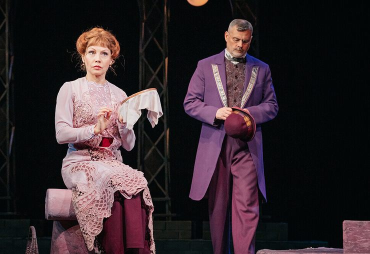 С первых минут спектакля со сцены как будто веет легким фиалковым ароматом, а лиловая гамма костюмов превращает всех персонажей в прекрасные цветы, выросшие на искусной клумбе в городском парке. Случайная встреча Элизы и Хиггинса на улице под проливным дождем оборачивается для бедной цветочницы ключем к прекрасному будущему. Для Хиггинса эта встреча не менее значительна и позволяет ему сделать не один важный вывод.