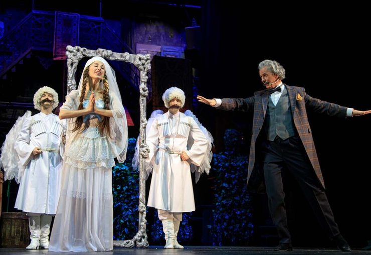Яркий, весёлый, музыкальный, красочный, завораживающий спектакль о свахе Хануме, которая никогда не унывает и всегда добивается своего. Тбилиси начала XX века. Родовитый князь, прокутивший всё своё состояние, спасаясь от кредиторов, срочно ищет богатую невесту. А зажиточный купец ради титула готов выдать свою молодую красавицу дочь за старого князя. Но сердце девушки отдано бедному учителю... И тут за дело берётся Ханума. Ловкая, бесстрашная, находчивая сваха все преграды обойдёт, всех вокруг пальца обведёт, но в результате все останутся довольны — в финале сыграют сразу три свадьбы! Блестящие актёрские работы, зажигательные грузинские танцы и великолепная музыка Георгия Канчели не оставят равнодушным никого!